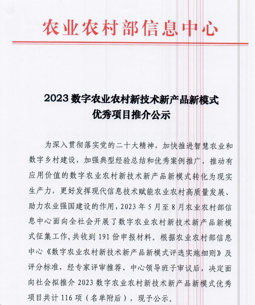 2023數(shù)字農(nóng)業(yè)農(nóng)村新技術(shù)新產(chǎn)品新模式優(yōu)秀項目評選是農(nóng)業(yè)農(nóng)村部為深入貫徹黨的二十大精神,建設(shè)智慧農(nóng)業(yè)、發(fā)展數(shù)字鄉(xiāng)村作為新時代新征程加快建設(shè)農(nóng)業(yè)強國的總抓手。